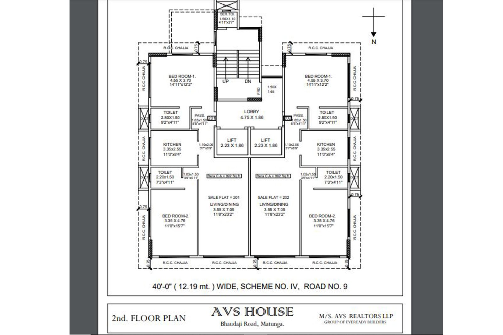 2 BHK 850 sqft.