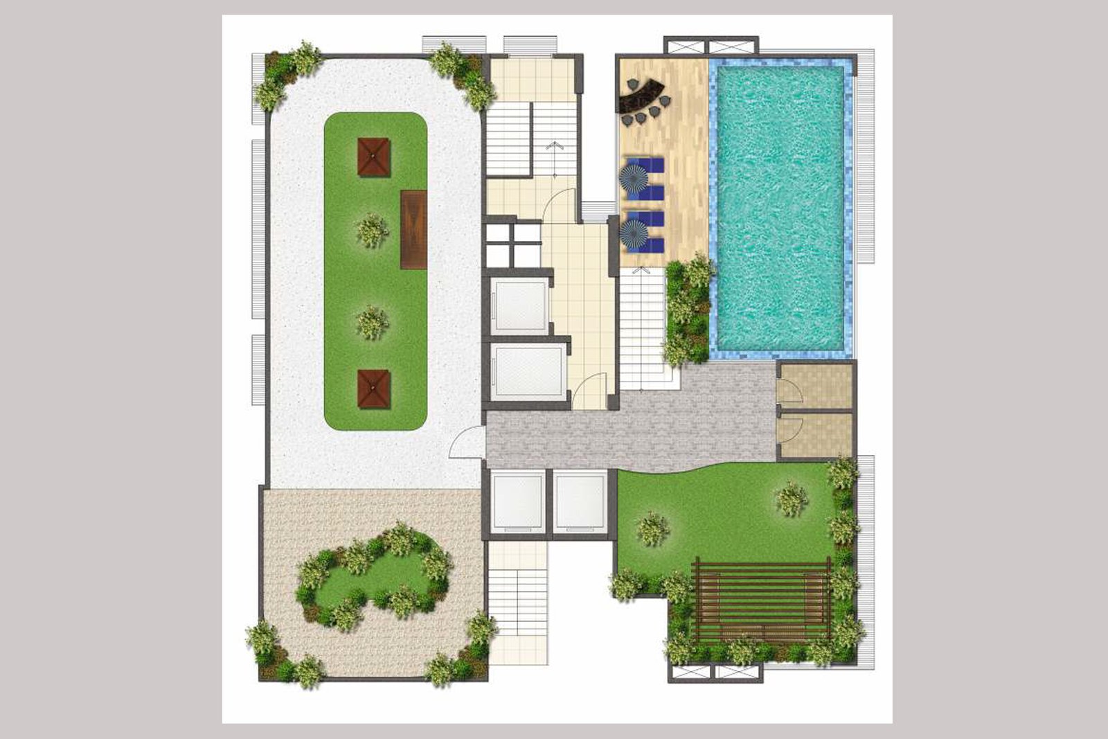 Party Lawn with Pergolas & Sit-outs